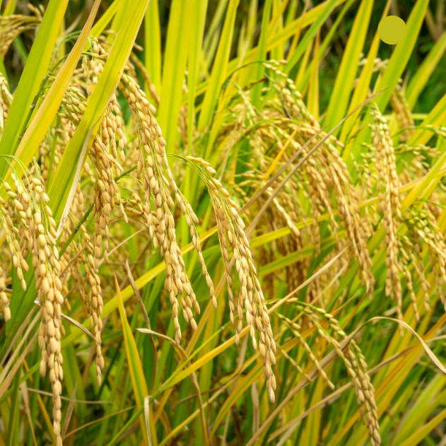 Rice (Oryza sativa) is a starchy, edible grain produced by a grass plant from the Poaceae family.